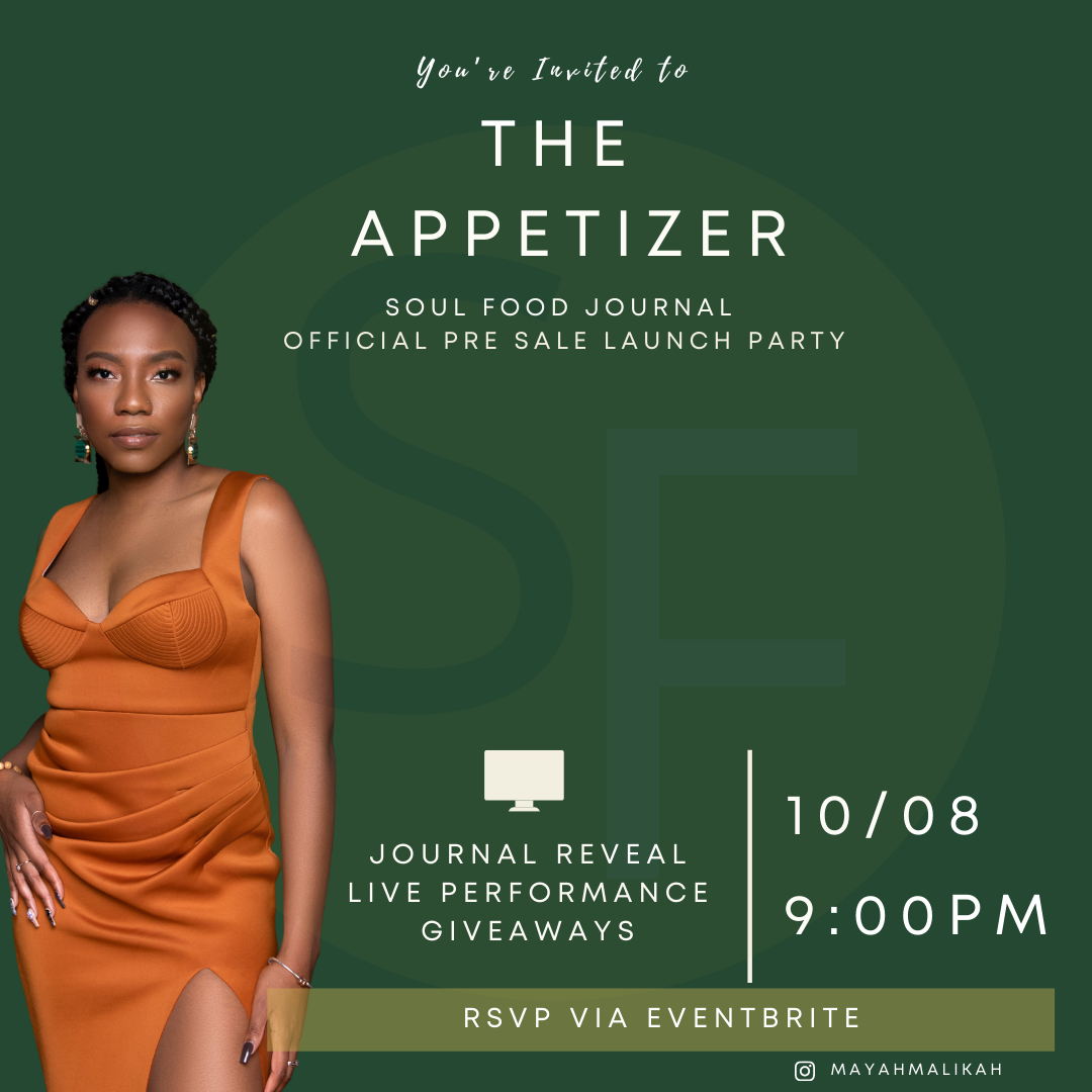The Soul Food Journal launched on October 8, 2020! In celebration of the 1 year anniversary, please enjoy the replay of our virtual launch party. Hear the story behind the creation of the Soul Food journal, a reading of the “Letter from the Author” and a special performance by artist, J’Pierre.
